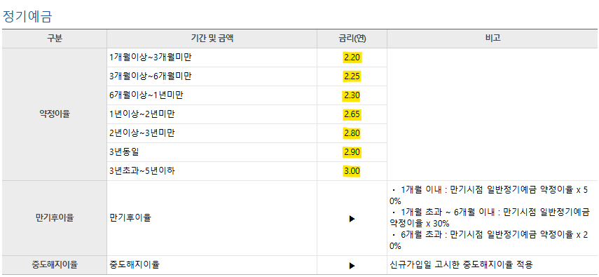 * 2023년 정기예금 금리 : 2.2% ~ 3%